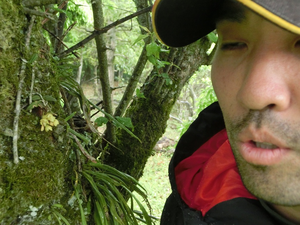 私は、古そうな木が生えていたら、欠かさず確認している事があります。コケやシダが付いていたら、着生ランが付いている可能性があるからです。