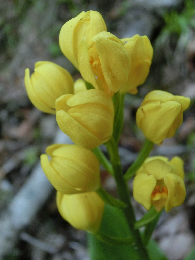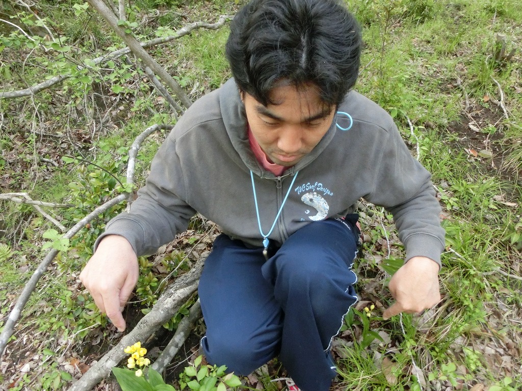 すると、黄色い点のようなものを遠くから発見しました。近づいてみると、前回、探すことの出来なかった、キンランを
