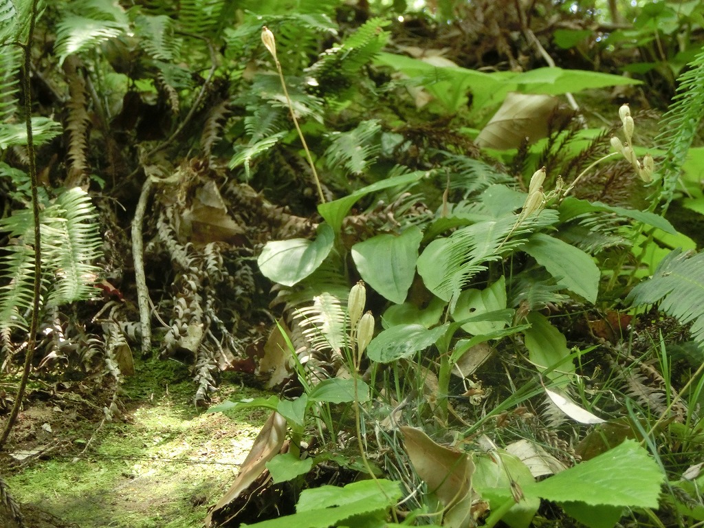 岩盤の上方にあたる森の中も探索したのですが、全くありません。数本のシュンラン(小株)とキンランを