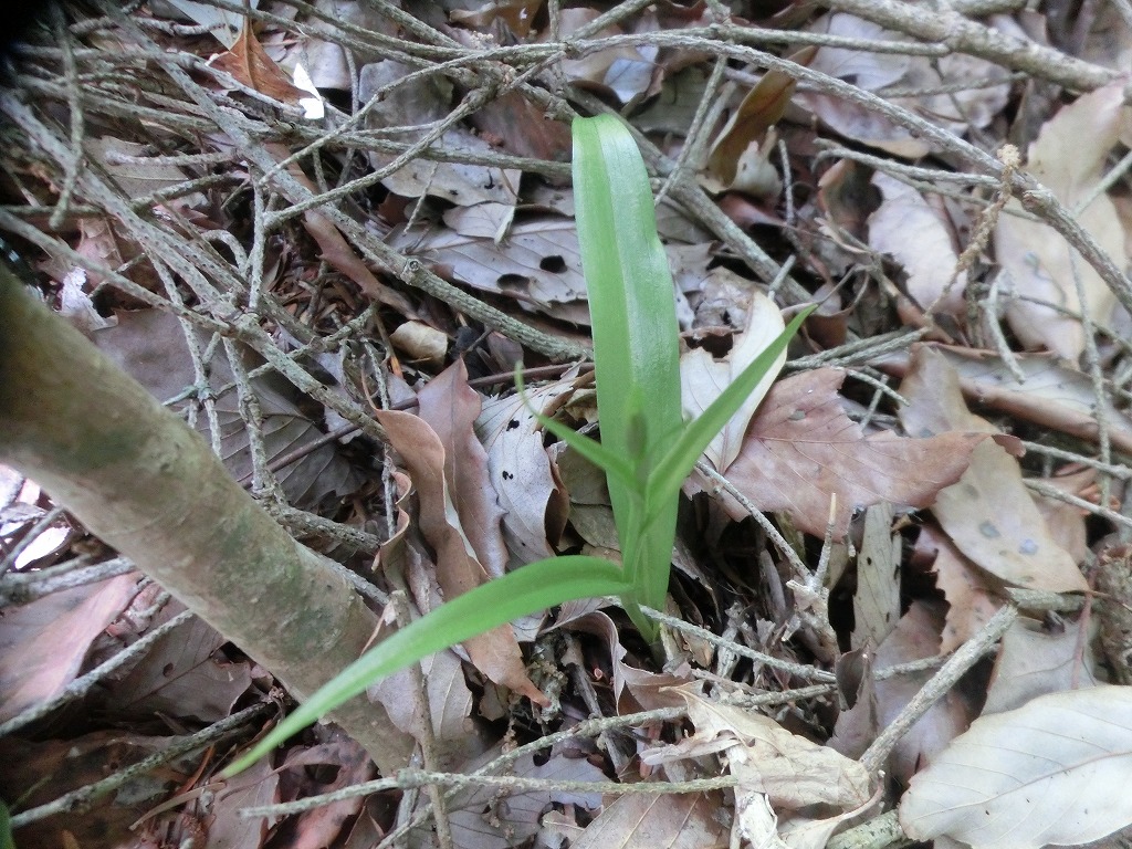 私もシュスラン属が生えるような土手のような所で、アワチドリのように、こうべを垂れているような葉が出ている株を見つけました。