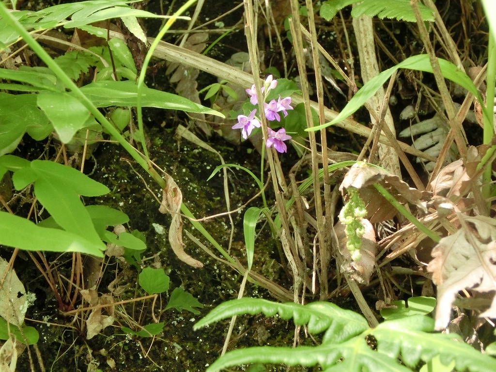 すると、下から10m程の所にシランがパラパラと群生していて、花は終わっていました。しかし、そのシランの近くに