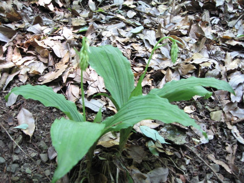 しかし、ついに開花している夏エビネを発見!ですが、ざんねんながら崖の上にあって近づけないし、私のカメラは未だ普通のデジカメなので、