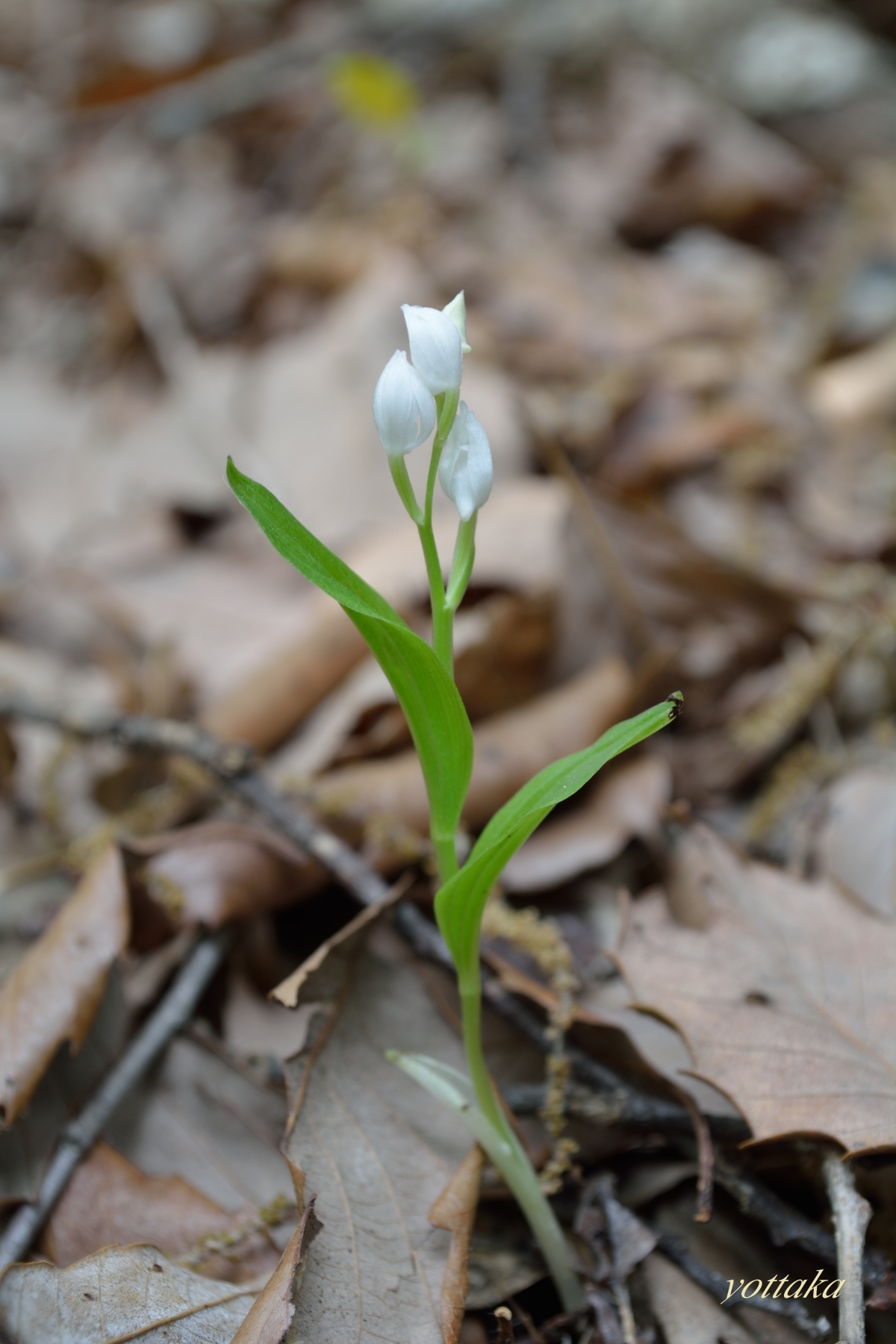 キンランでも咲いてないか山中の土手を確認すると、何やら白い点のようなものが見えました。
