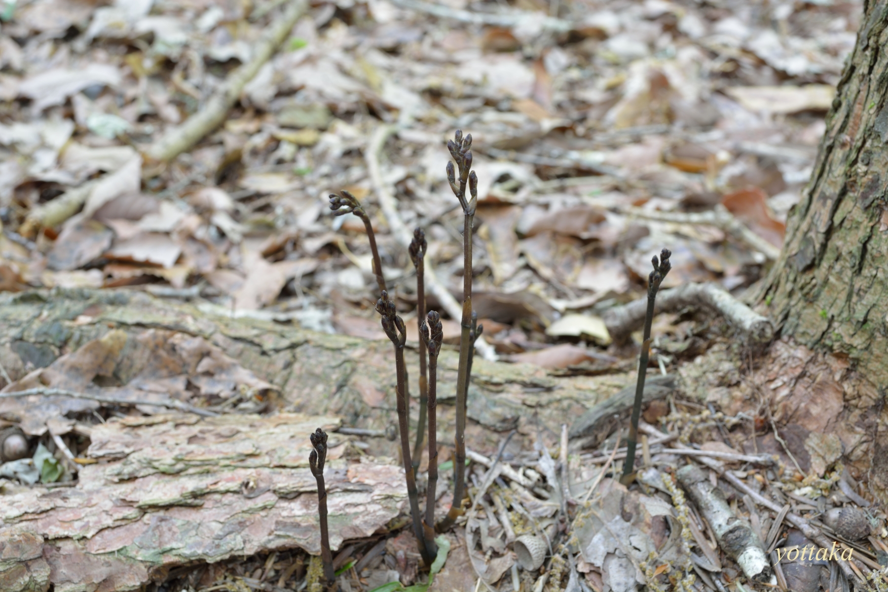 sinちゃんとまだないか探すと、あるはあるは、それこそワラビのように生えているので、「よっちゃん、ムヨウランって