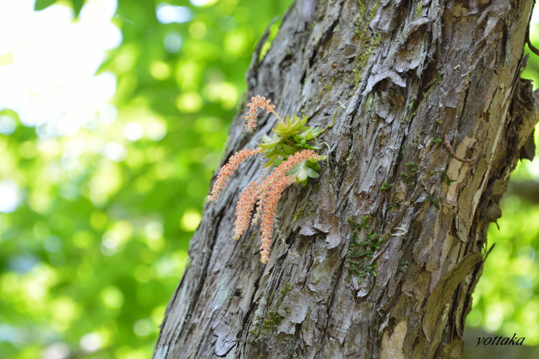林道を入ってすぐの隣に広がる里山の木に、ヨウラクランが着生していました。