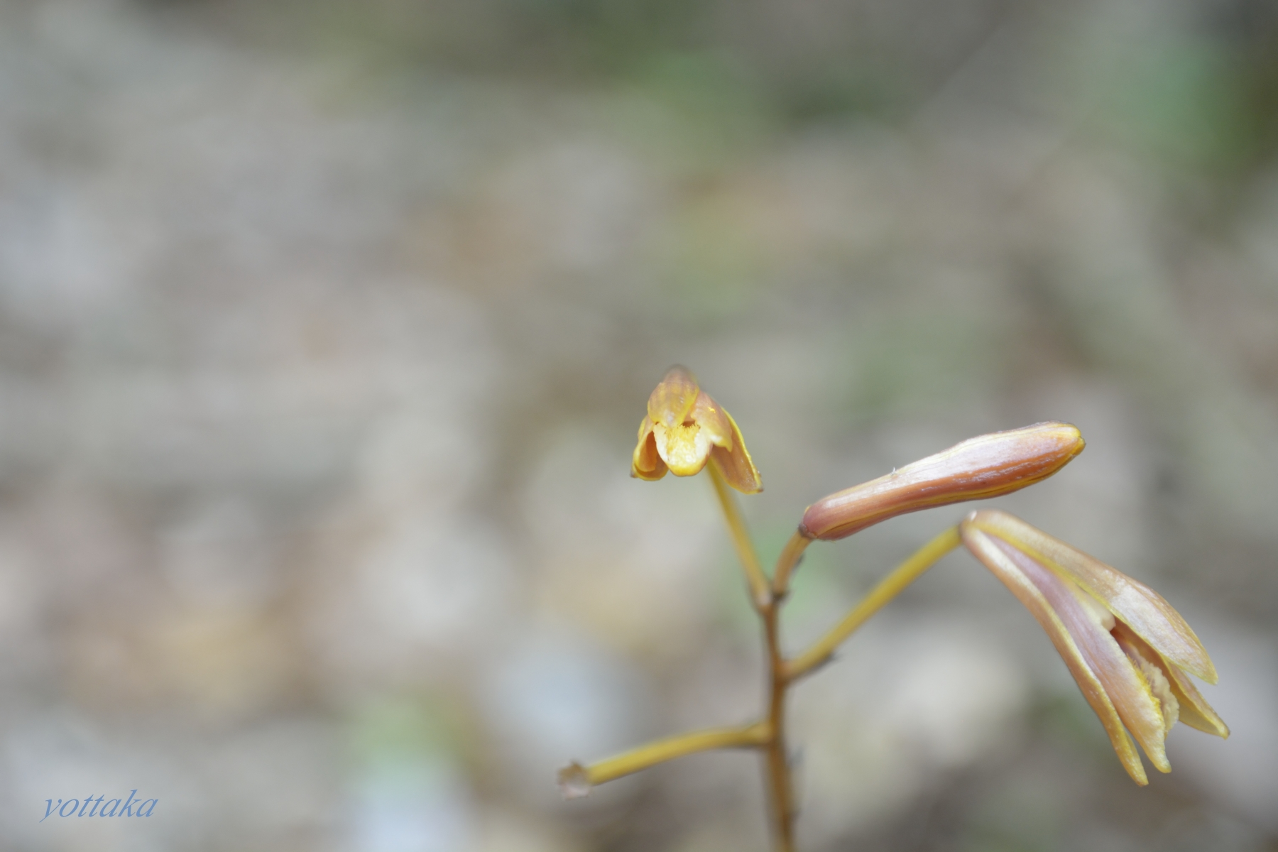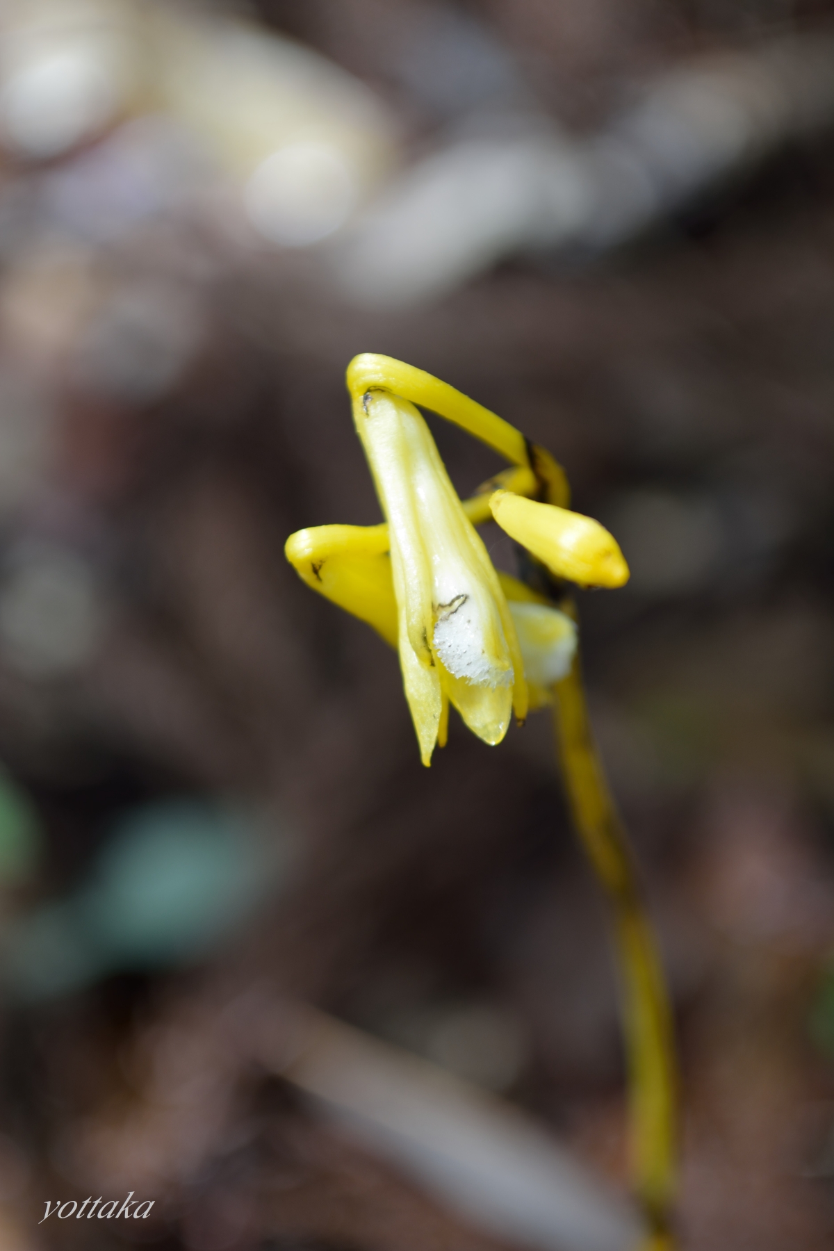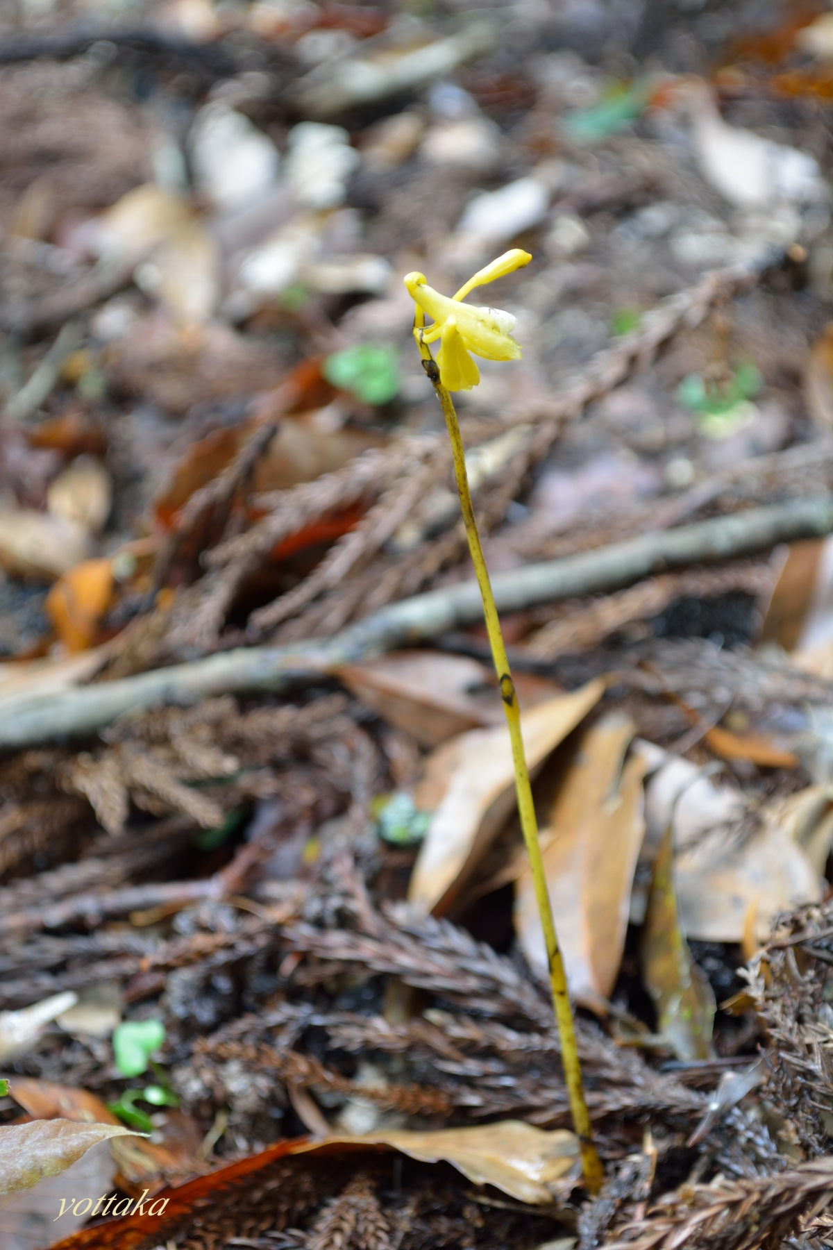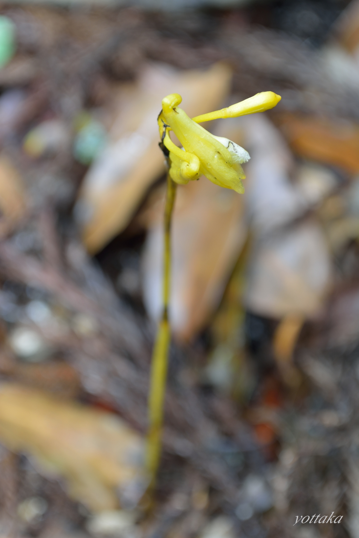 この個体には膨らみは全くありませんので、ムヨウランの黄花品種(Lecanorchis japonica var.kiiensis)