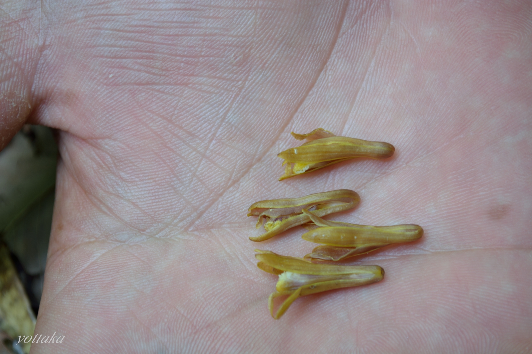 なぜか、果実を付けずに咲いたまま落ちているものがほとんどでした。食べられたわけではないのに...。