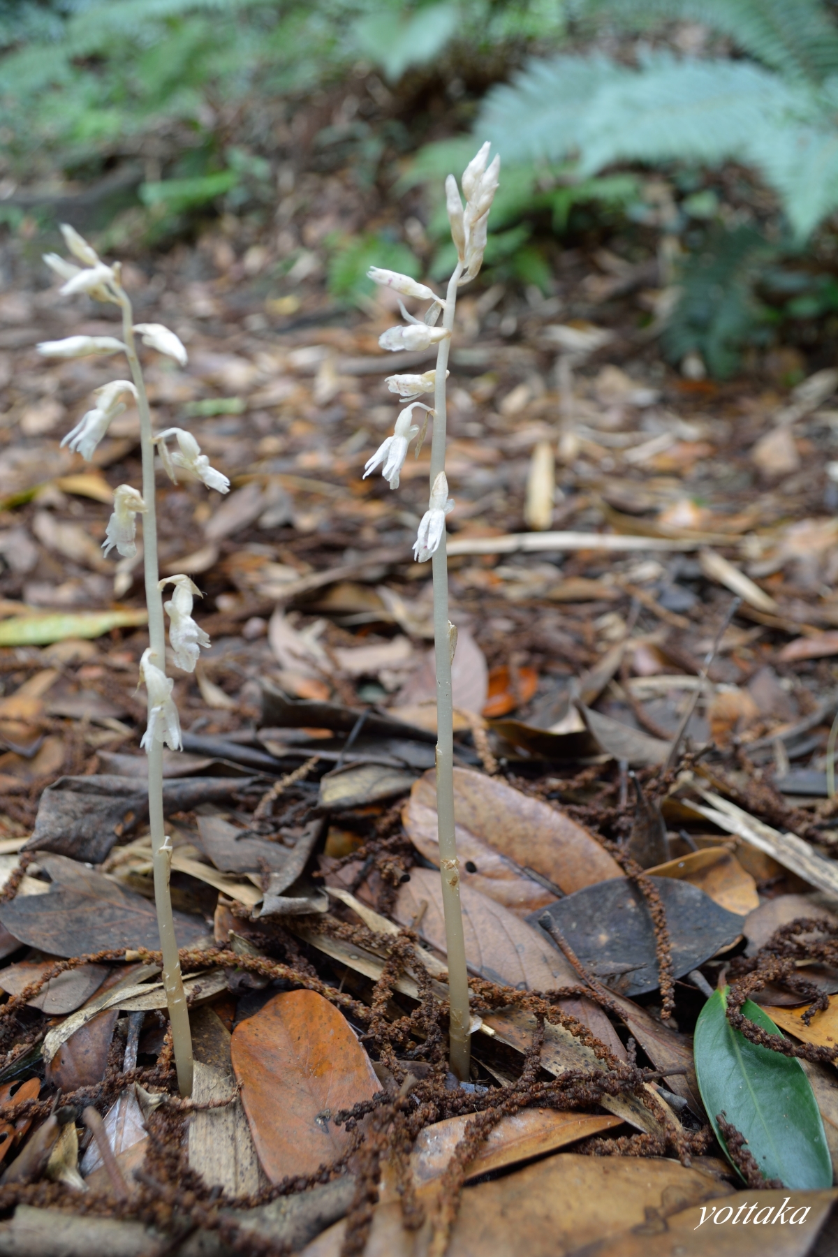 タシロランはこの時期、千葉県でも南方エリアの、マテバシイ林床の特にうす暗い所を探すと、案外簡単に見つける事が出来ます。