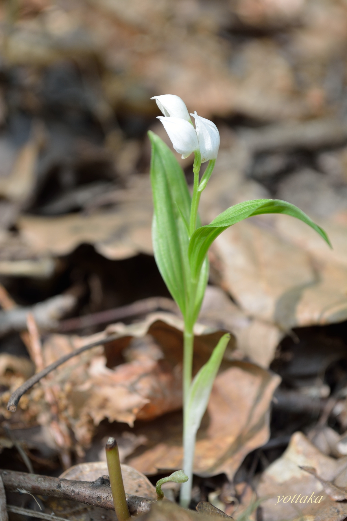 こちらは花がお互いに向かい合って、葉が2枚。完全に上を向いてねじれていません。まだ完全に花が開いていない状態ですが、ユウシュンランと断定してもよさそうです。