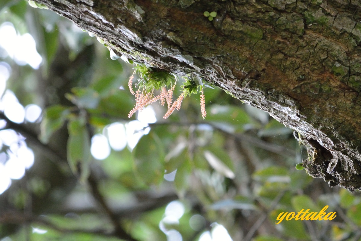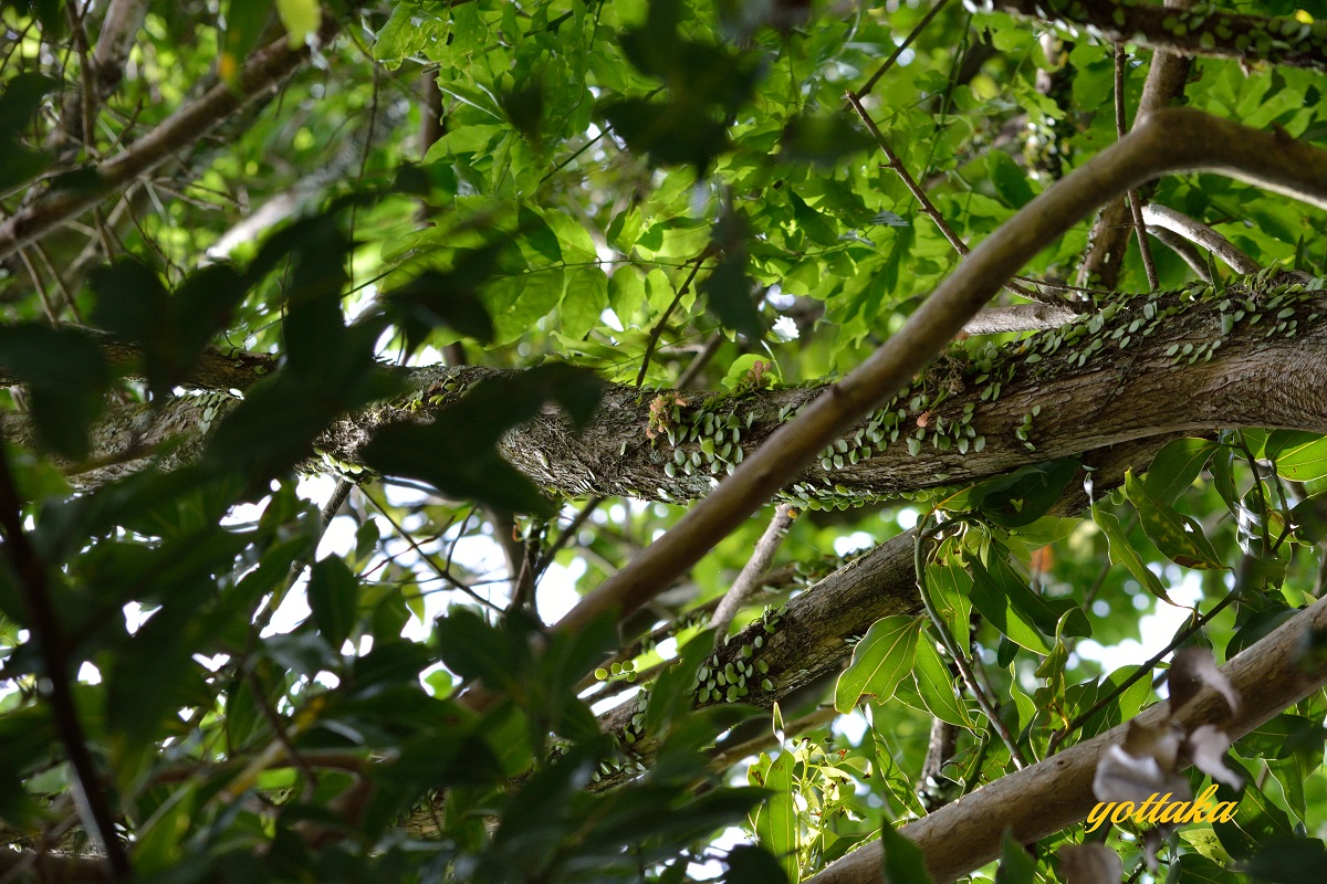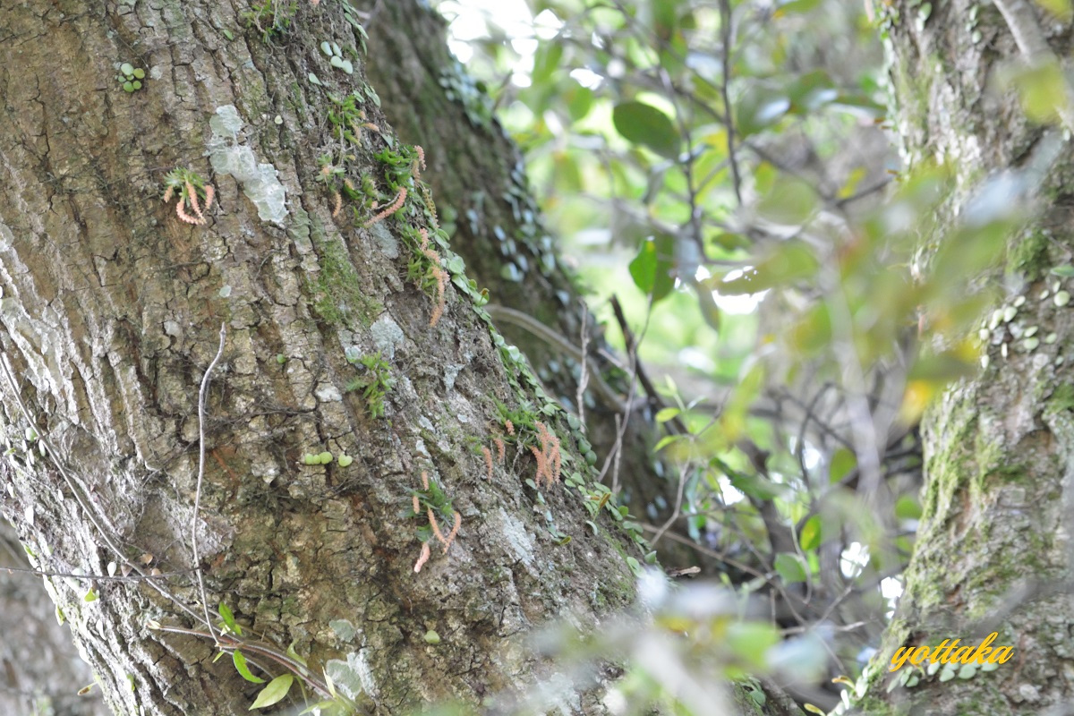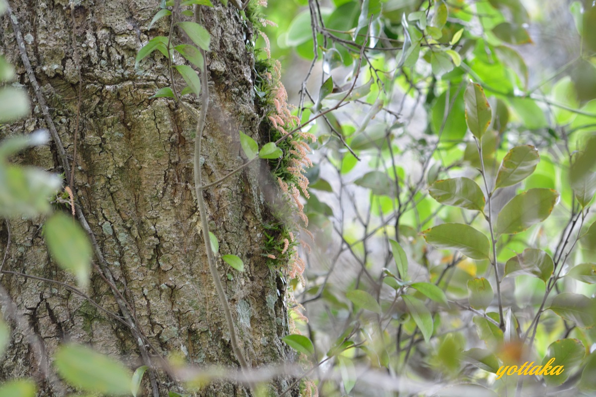 道沿いのスダジイの大木に着生しているのですが、民家の近くなので、畑仕事している方に声を掛けてから撮影しました。