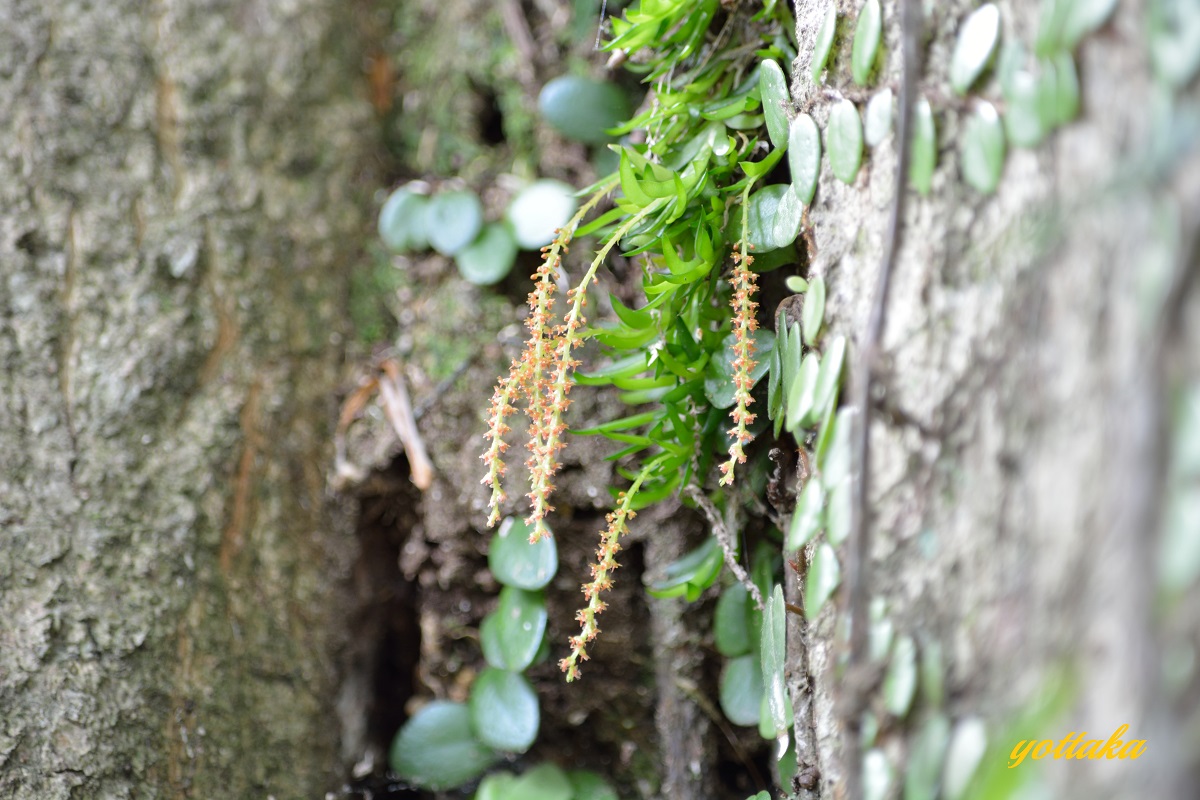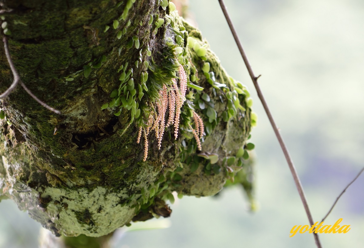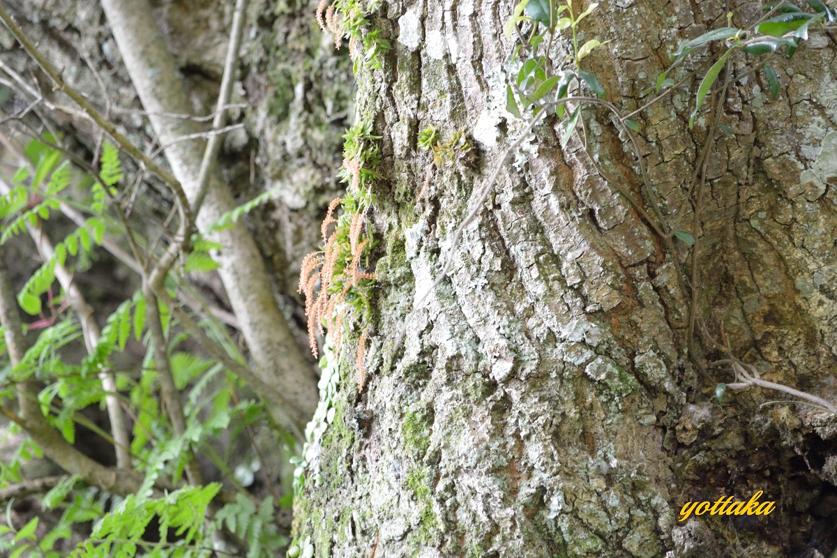 道沿いのスダジイの大木に着生しているのですが、民家の近くなので、畑仕事している方に声を掛けてから撮影しました。