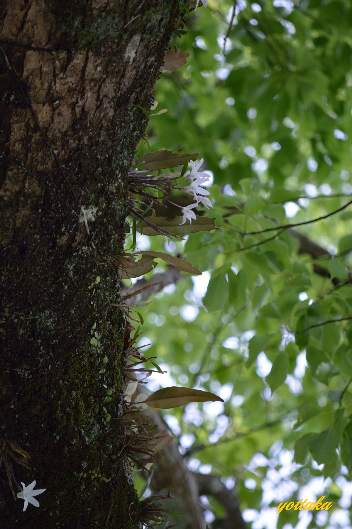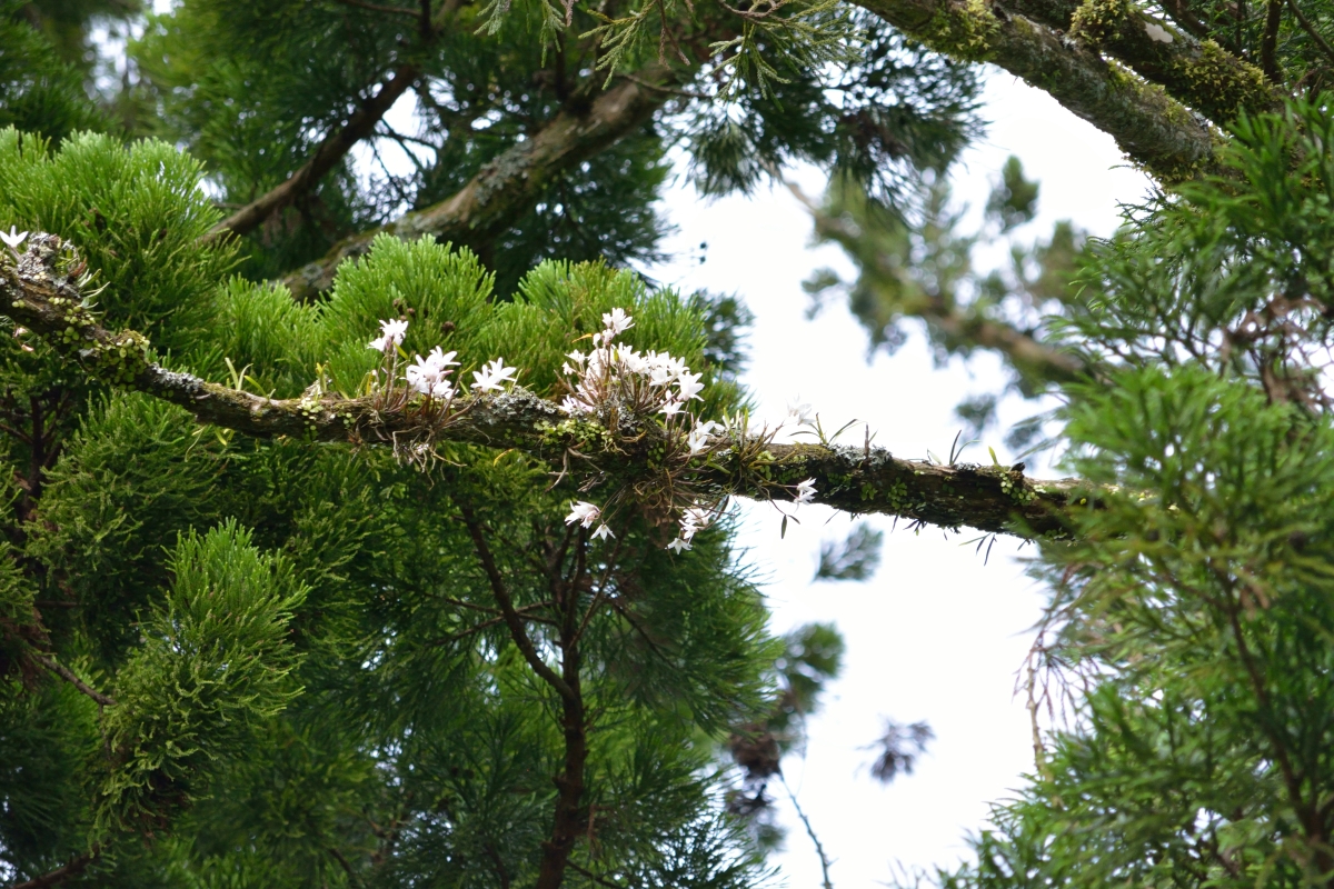 足の調子は相変わらず悪いので、上を見上げるだけ(?)でよい着生ラン、セッコクを見に行きました。