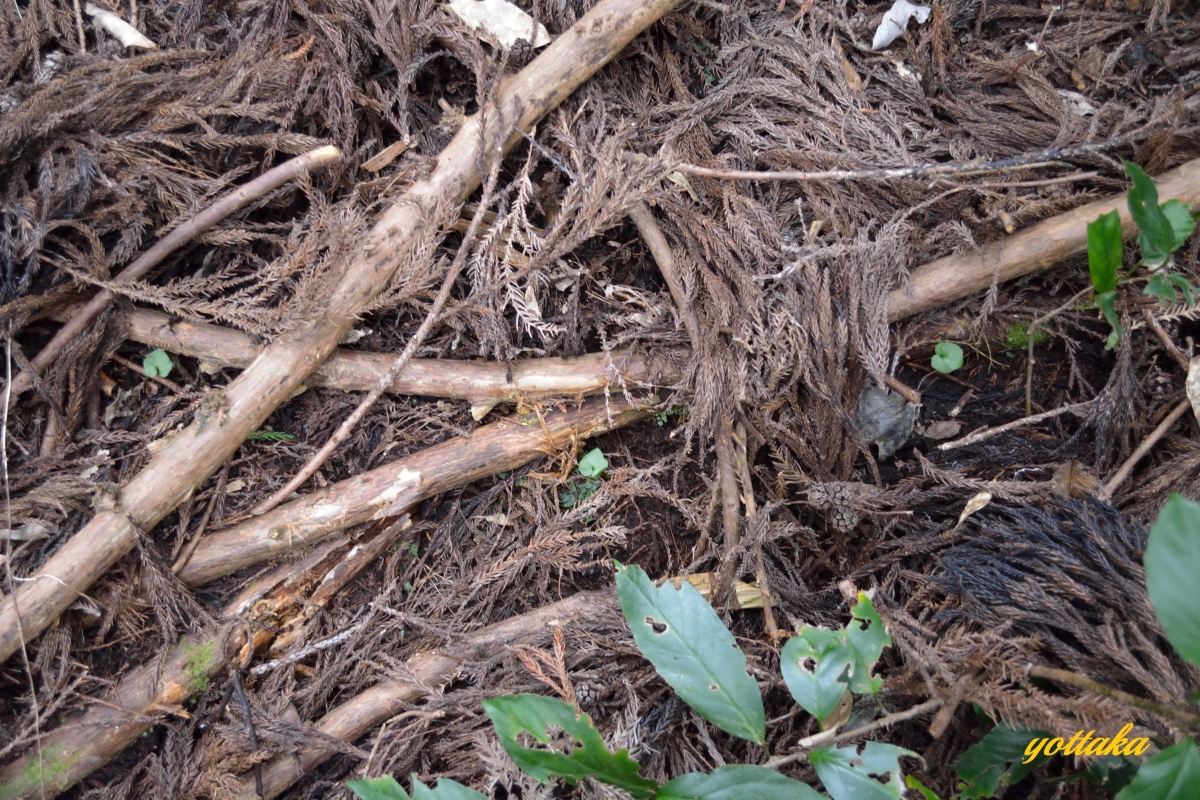 ここは2016年に、ムカゴサイシンを1本だけ見つけた場所の近くで、過去に探索に入っていない場所をメインに探してみようと思っていました(次の年の同じ時期、開花時期にも
