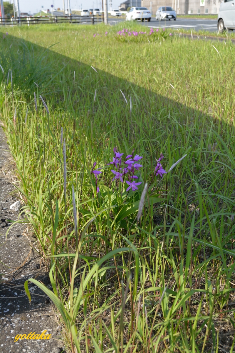 帰り道、国道を走っていると...中央分離帯にシランが...
